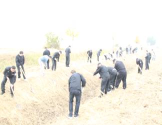 此次活动主要任务是挖渠280米,活动开始后,大家一组组分开,挖土的挖土,掘草的掘草。秋风萧瑟中,干警们不一会儿就干得热气腾腾,头上不断有汗水渗出,大家顾不上擦汗,脱掉外衣,继续投入到紧张的义务劳动中。经过干警们的努力,修葺整齐、焕然一新的水渠在肥沃的农田中格外惹眼。经过1天的辛勤劳动,干警们圆满完成了挖渠的工作任务。等到春季开渠灌溉后,这里将成为一片充满生机盎然的沃土。