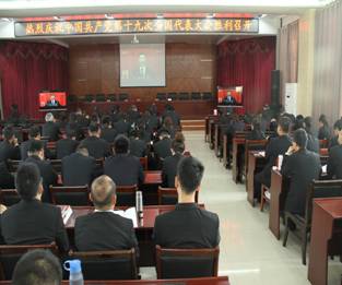 1018日上午,西夏区人民法院组织80余名干警通过电视直播收看党的十九大开幕盛况,全体干警统一着装,全神贯注,聆听习近平总书记向大会所作的报告。